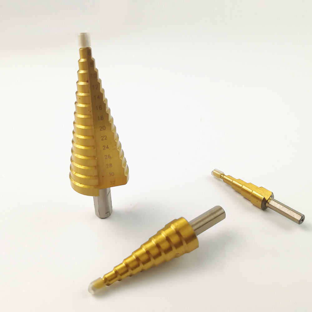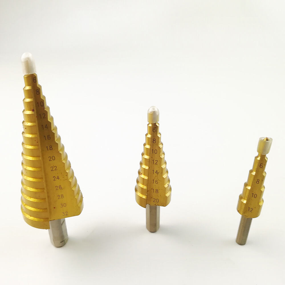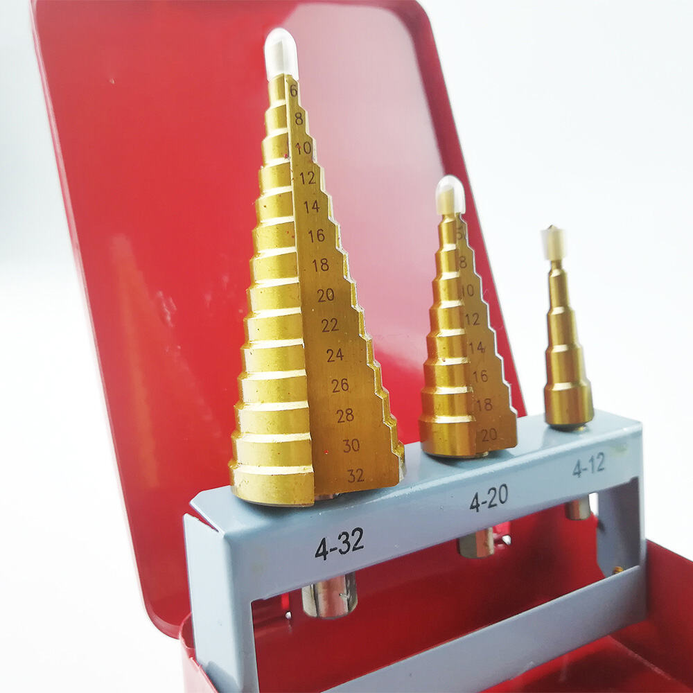 3PCS HSS Step Drill Bit Set with Titanium Coating, Multi Size Cone Drill Bits for Metal, Aluminum & Plastic Drilling