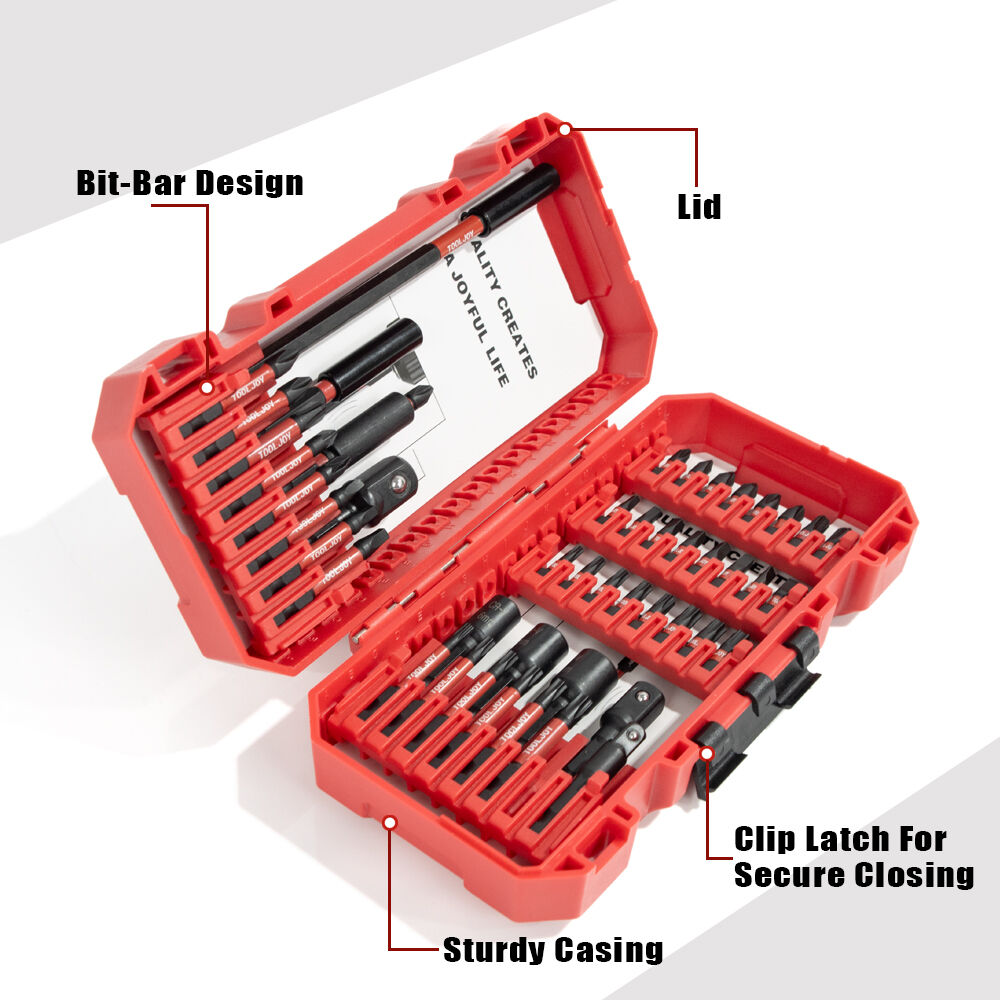 Complete screwdriver bit set with magnetic holder for electric drills and impact drivers.